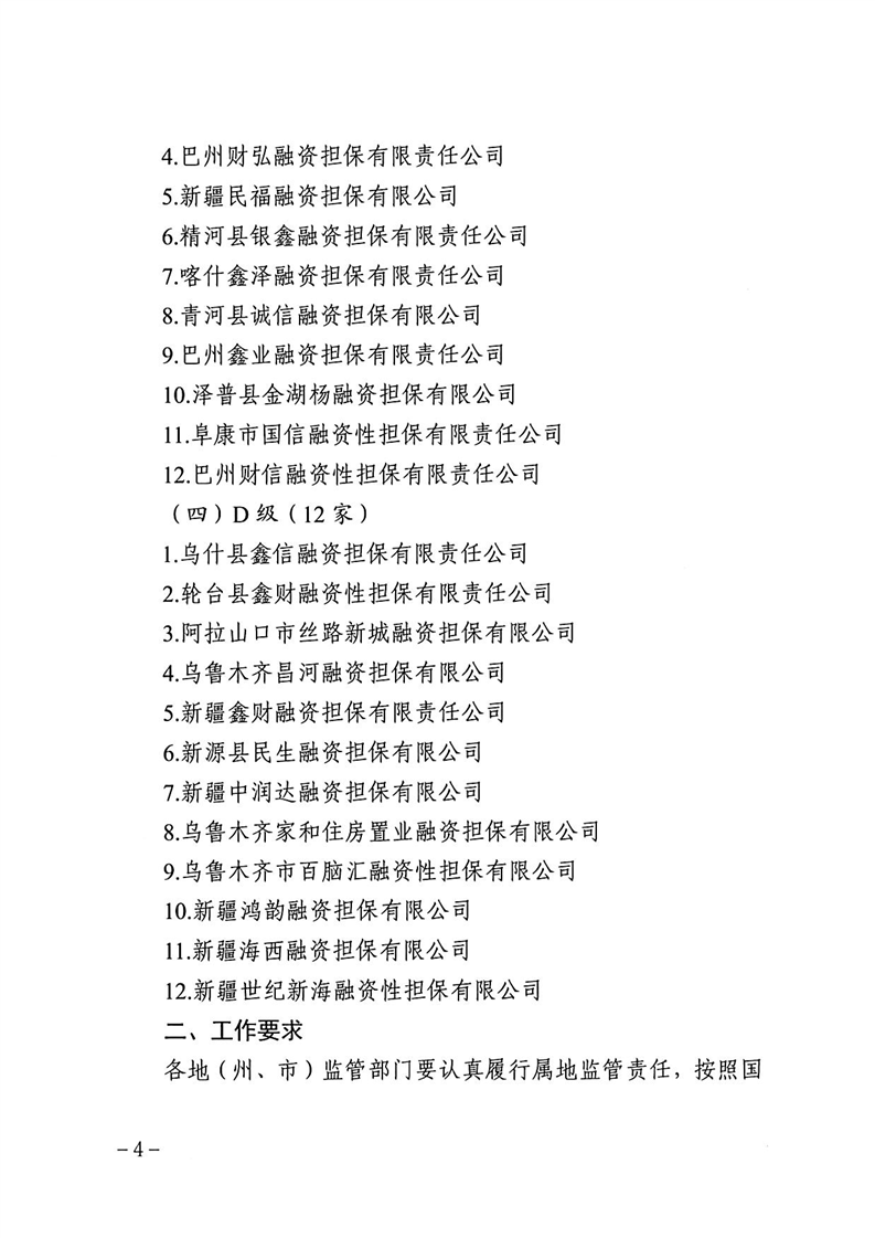 关于2024年度自治区融资担保公司分类监管评级结果的通报