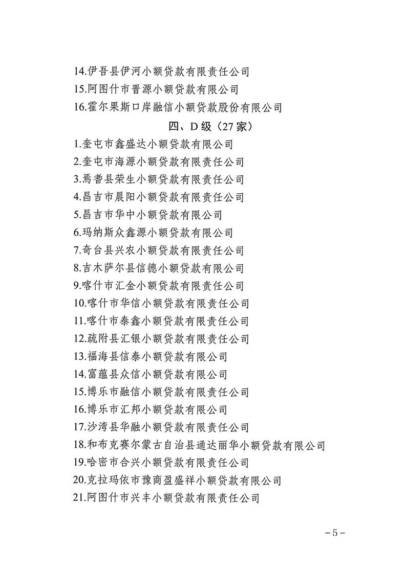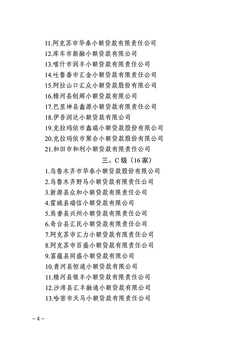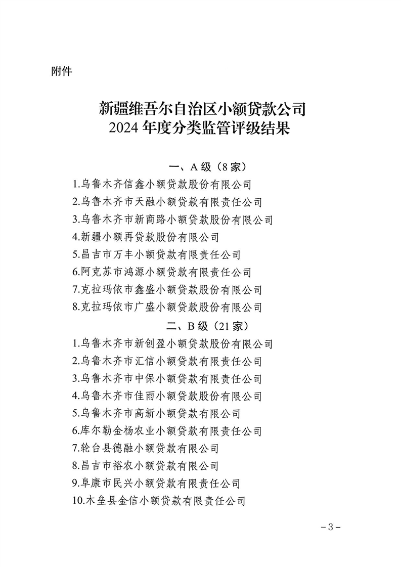 关于2024年度自治区小额贷款公司分类监管评级结果通报